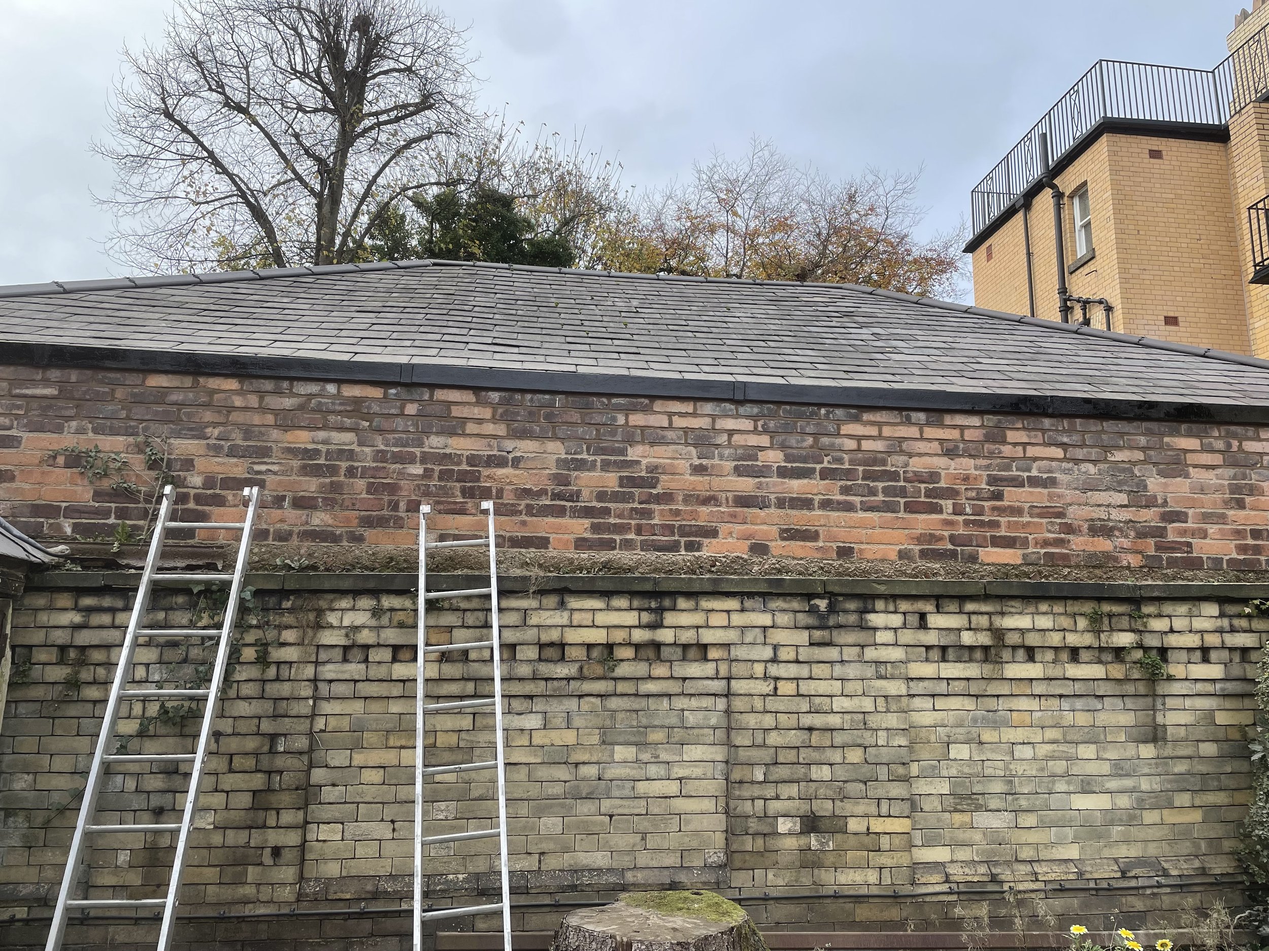 Water ingress from the gutter was causing damage to the internal walls of the building. relining of the gutter and repointing the brickwork was the solution
